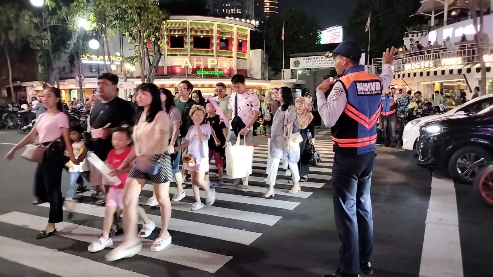 Warga Surabaya pun antusias mengabadikan momen bersejarah ini dengan ponsel mereka. Tak sedikit yang mengangkat tangan, merayakan malam penuh keceriaan dan harapan. Meski jalanan mulai padat, semua orang tampak menikmati kehangatan kebersamaan di malam yang istimewa ini.