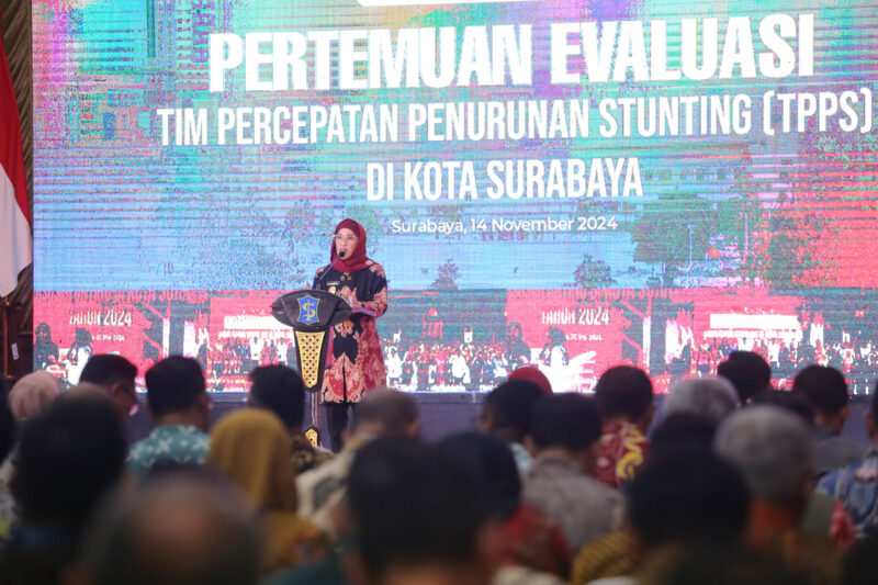 Pemerintah Kota (Pemkot) Surabaya menggelar pertemuan evaluasi Tim Percepatan Penurunan Stunting (TPPS) bertempat di Graha Sawunggaling, Kamis (14/11/2024). Rapat ini menjadi penegasan komitmen Pemkot Surabaya dalam upaya menuju zero stunting.