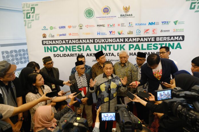 Kementerian Luar Negeri (Kemenlu) menginisiasi kerja sama dengan puluhan organisasi amal dan kemanusiaan di Indonesia untuk penggalangan dan penyaluran bantuan bagi Palestina, Rabu (26/2/2025). Acara dikemas dalam tajuk “Penandatanganan Dukungan dan Kampanye Bersama Indonesia untuk Palestina: Solidaritas, Aksi Nyata, dan Harapan Baru.”