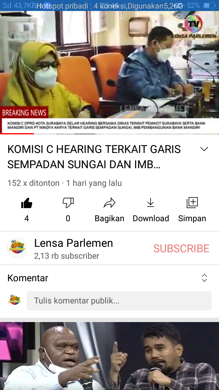 KOMISI C HEARING TERKAIT GARIS SEMPADAN SUNGAI DAN IMB PEMBANGUNAN BANK MANDIRI, Jl. GAYUNGAN SURABAYA
