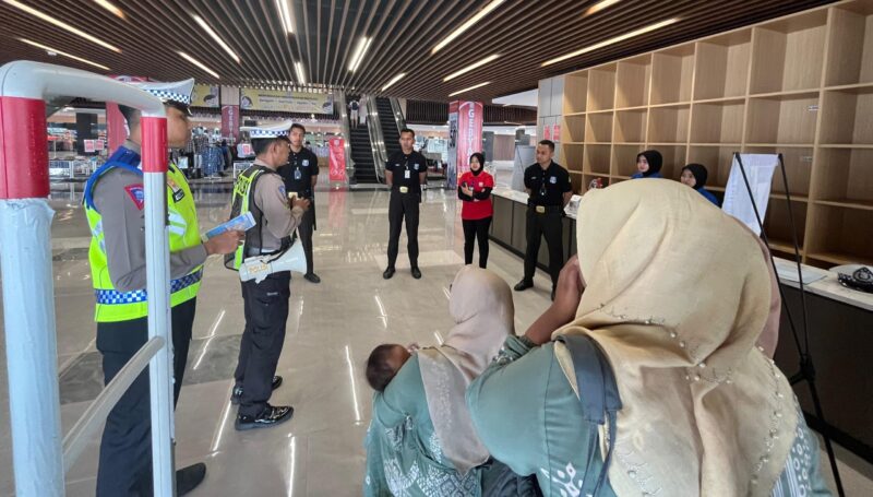 Kepada pengunjung di pusat perbelanjaan, petugas menghimbau agar menjadikan tertib berlalulintas sebagai budaya.