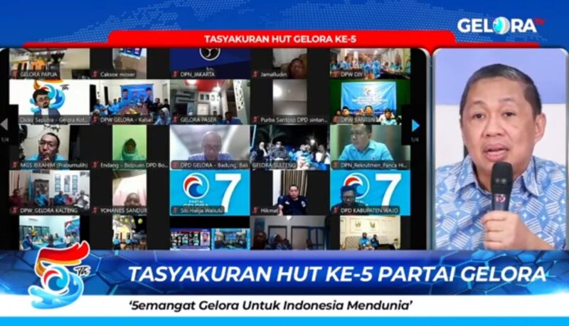 Dalam perayaan HUT ke-5 yang dipandu Ketua Bidang Komunikasi Dedi Miing Gumelar dan Ketua Bidang Perempuan DPN Partai Gelora Ratih Sanggarwati itu, Fahri Hamzah hadir melalui zoom meeting, bersama pengurus DPW dan DPD Partai Gelora se-Indonesia.