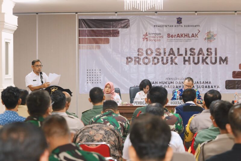 Pemerintah Kota (Pemkot) Surabaya menggelar sosialisasi produk hukum Peraturan Daerah (Perda) Kota Surabaya Nomor 8 tahun 2024 tentang Fasilitas Pencegahan dan Pemberantasan Penyalahgunaan Peredaran Gelap Narkotika dan Prekursor Narkotika (P4GNPN), di Convention Hall Siola, Rabu, (25/9/2024). Dalam sosialisasi perda tersebut, pemkot melalui Badan Kesatuan Bangsa dan Politik (Bakesbangpol) Kota Surabaya turut menggandeng Badan Narkotika Nasional Kota (BNNK) Surabaya.