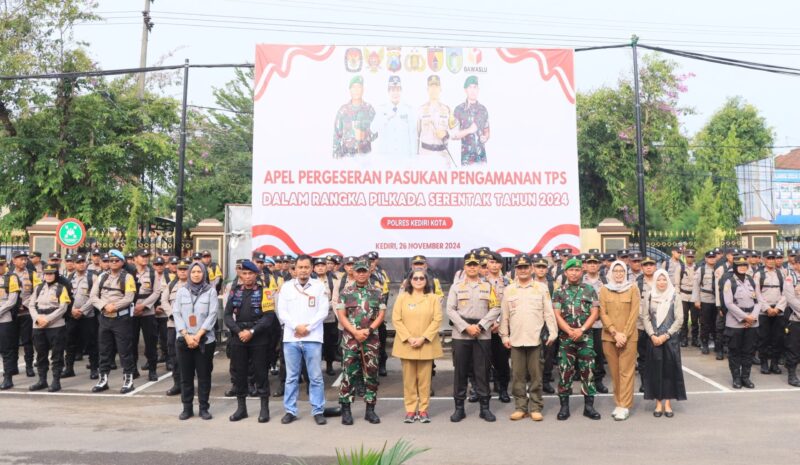 Apel Pergeseran Pasukan Pengamanan TPS dipimpin oleh PJ Walikota Kediri Dr. Ir. Zanariah, M.Si, Dandim 0809 Kediri Letkol Inf Aris Setiawan, S.H. Kapolres Kediri Kota AKBP Bramastyo Priaji, S.H., S.I.K., M.Si. serta diikuti oleh personil TNI/Polri, KPU Kota Kota/Kab Kediri, Bawaslu Kota/Kab Kediri, Kapolsek Jajaran Polres Kediri Kota dan Perlindungan Masyarakat (Linmas)