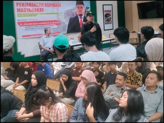 Anggota Komisi D DPRD Kota Surabaya dari Fraksi Partai Keadilan Sejahtera (PKS), H. Johari Mustawan, menggelar kegiatan reses masa sidang kedua Tahun Anggaran 2025, Jum’at (12/9/2025), bertempat di Jl. Raya Kupang Indah, Kelurahan Dukuh Kupang, Kecamatan Dukuh Pakis, Surabaya (Dapil 5).
