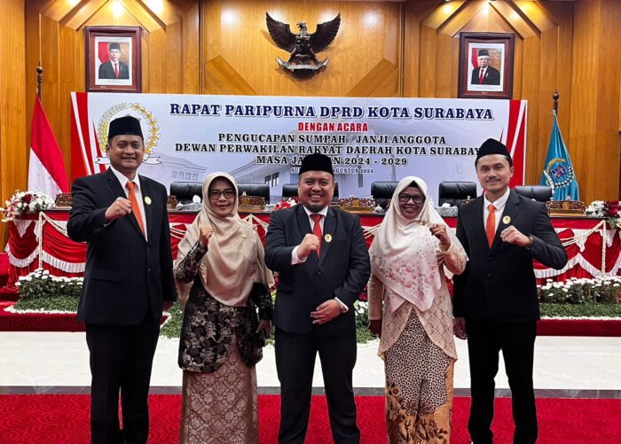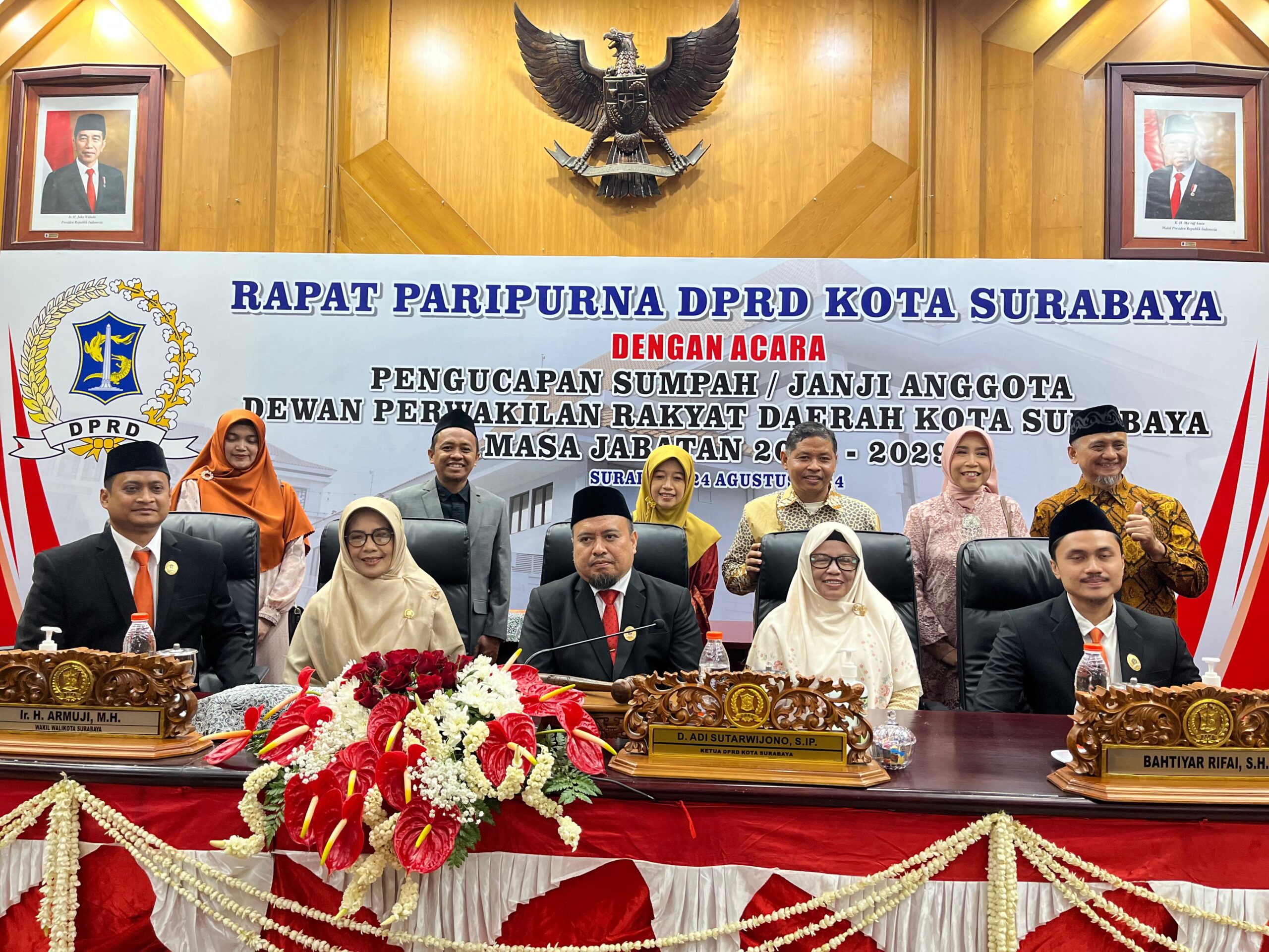 Pada Sabtu pagi ini (24/8), anggota Dewan Perwakilan Rakyat Daerah (DPRD) Kota Surabaya periode 2024-2029 resmi dilantik di Ruang Paripurna Gedung DPRD, Jalan Yos Sudarso Surabaya. Partai Keadilan Sejahtera (PKS), berdasarkan hasil Pemilihan Legislatif 2024, berhasil memperoleh 5 kursi dari masing-masing Daerah Pemilihan (Dapil), yang memungkinkan PKS membentuk Fraksi Partai Keadilan Sejahtera (PKS) sebagai kelanjutan perjuangan dari periode sebelumnya.