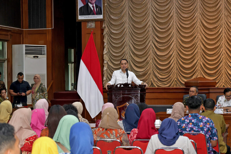 Wali Kota Surabaya, Eri Cahyadi mengumpulkan jajaran kepala perangkat daerah (PD) di Graha Sawunggaling, Kamis, (2/1/2025). Mulai dari Sekretaris Daerah (Sekda), Asisten, Kepala Dinas, Camat, hingga Lurah di lingkungan Pemerintah Kota (Pemkot) Surabaya.
