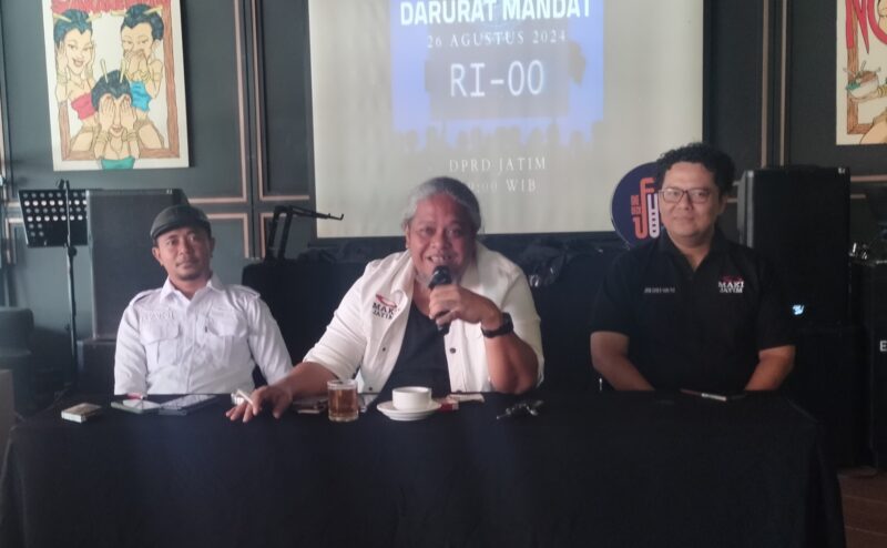 Lembaga Swadaya Masyarakat (LSM) Masyarakat Anti Korupsi (MAKI) Jawa Timur (Jatim) menggelar konferensi pers di One Deck Cafe Sutos, Surabaya, pada hari Senin siang. Konferensi pers ini menjadi sarana bagi MAKI Jatim untuk menunjukkan komitmennya dalam menuntut pemerintah agar segera menindaklanjuti isu-isu strategis yang berkaitan dengan kepentingan rakyat, sesuai dengan mandat RI-00.