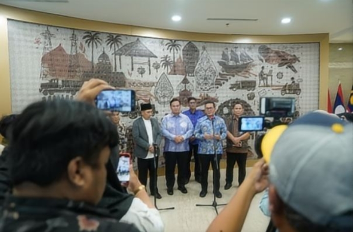 Menteri Perdagangan Budi Santoso dan Ketua Ombudsman RI Mokhammad Najih bertemu pada Jumat, (21/3) di kantor Kementerian Perdagangan, Jakarta. Pertemuan ini bertujuan untuk memperkuat sinergi pengawasan dan distribusi MINYAKITA. Hal ini menindaklanjuti maraknya temuan MINYAKITA tidak sesuai ketentuan. (Siaran Pers)