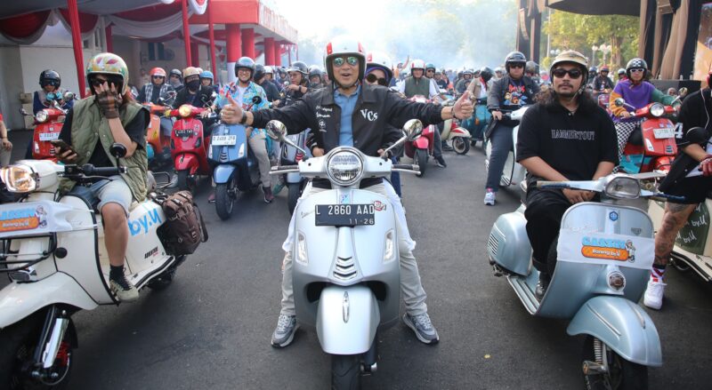 Pemerintah Kota (Pemkot) Surabaya menggelar sunmori (sunday morning ride) bersama Malik Entertainment, serta Komunitas Vespa, Minggu (21/7/2024). Sunmori bertajuk ‘Surabaya Bervespa’ ini, diikuti oleh ribuan pecinta vespa dari berbagai kota di Indonesia, mulai Surabaya, Lombok, Makassar, Mojokerto, Madura, dan masih banyak lainnya.