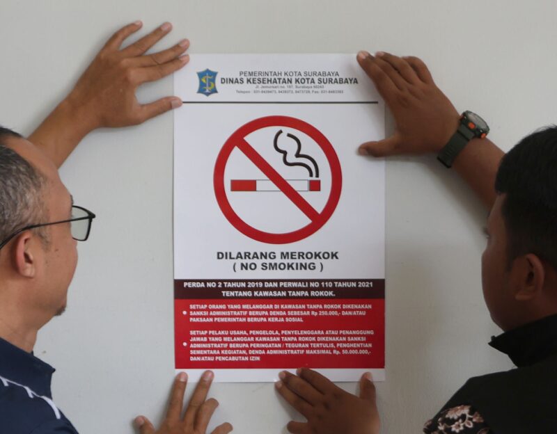 Pemerintah Kota (Pemkot) Surabaya melalui Dinas Kesehatan (Dinkes) Kota Surabaya secara rutin menggelar sosialisasi dan pengawasan terhadap implementasi Kawasan Tanpa Rokok (KTR) dan Kawasan Terbatas Merokok (KTM) di seluruh wilayah Kota Surabaya.