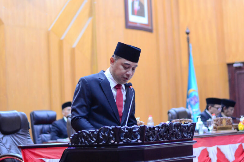 Wali Kota Surabaya Eri Cahyadi memberikan tanggapan dan jawaban atas pandangan umum (PU) Fraksi terhadap Rancangan Peraturan Daerah tentang Anggaran Pendapatan dan Belanja Daerah (APBD) tahun anggaran 2025. Tanggapan tersebut disampaikan langsung dalam sidang paripurna di Ruang Rapat Utama Gedung DPRD Surabaya, Kamis (1/8/2024).