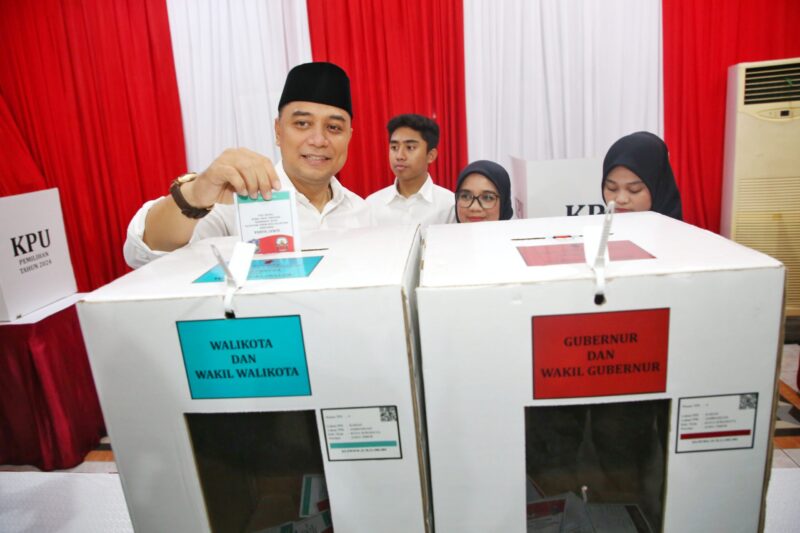 Dalam Pemilihan Presiden (Pilpres) lalu, Wali Kota Eri datang ke TPS hanya bersama istrinya, Rini Indriyani, dan anak pertamanya Alfanana Puteri. Nah, di Pilkada 2024 semakin lengkap, ia datang ke TPS sekaligus dengan anak keduanya, Rahmad Haidar Pasha sebagai pemilih pemula.